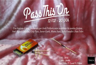 PASS THIS ON Una història d’amor Provocada per Jordi Pallarès entre nosaltres i les nostres ficcions amb Miquel Cañellas, Grip Face, Javier Garló, Marta Juan, Julià Panadès i Joan Soler….