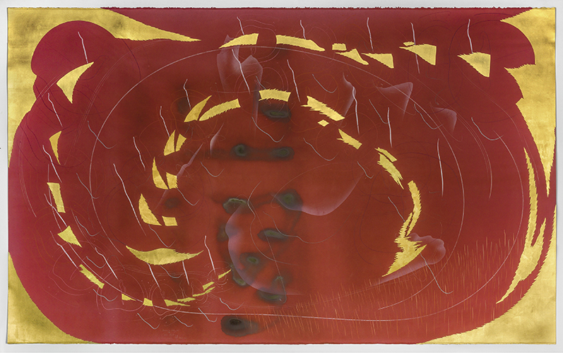 La artista alemana Jorinde Voigt desarrolla complejos e idiosincrásicos sistemas basándose en la notación musical, textos filosóficos y las propias impresiones sensoriales para crear dibujos a gran escala que combinan formas turbulentas y expresivas, así como precisión algorítmica.